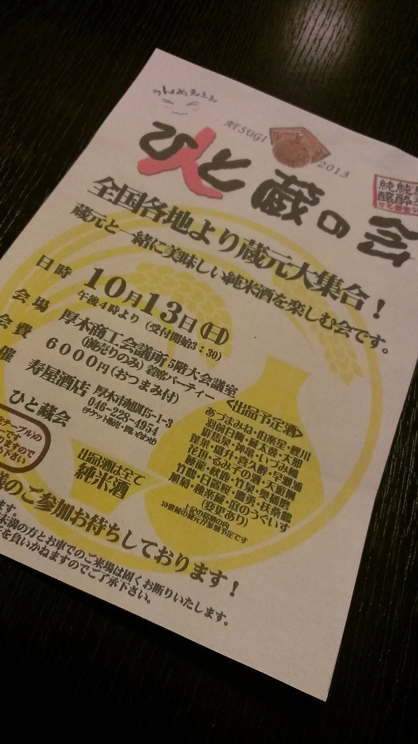 日頃から大変お世話になっており、更にお酒の師匠でもある厚木・寿屋酒店の榎本さん主催の日本酒の会です!(≧▽≦)