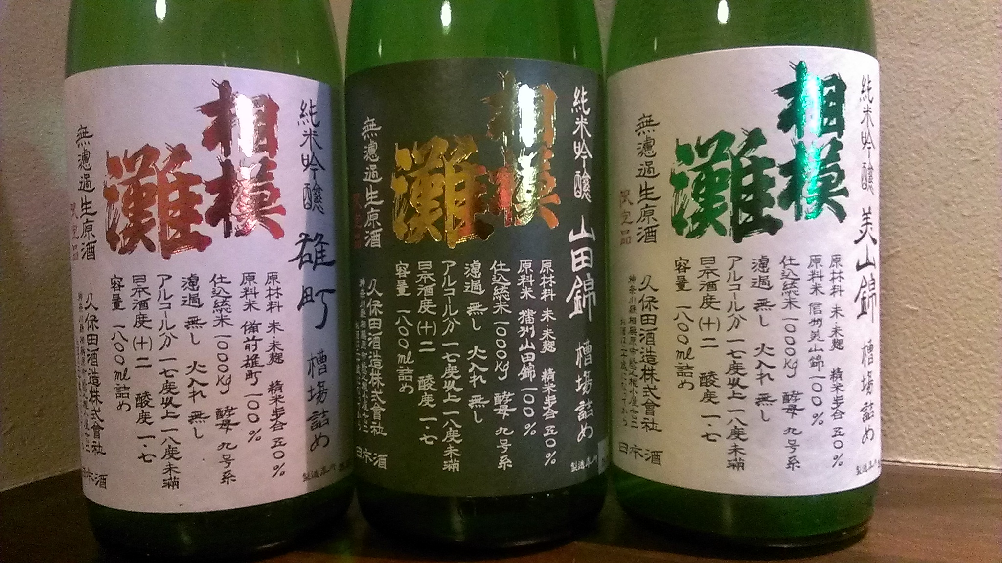 当店でも、今年の新酒「相模灘の美山錦・雄町・山田錦」と出揃っておりますので、ご賞味あれ。