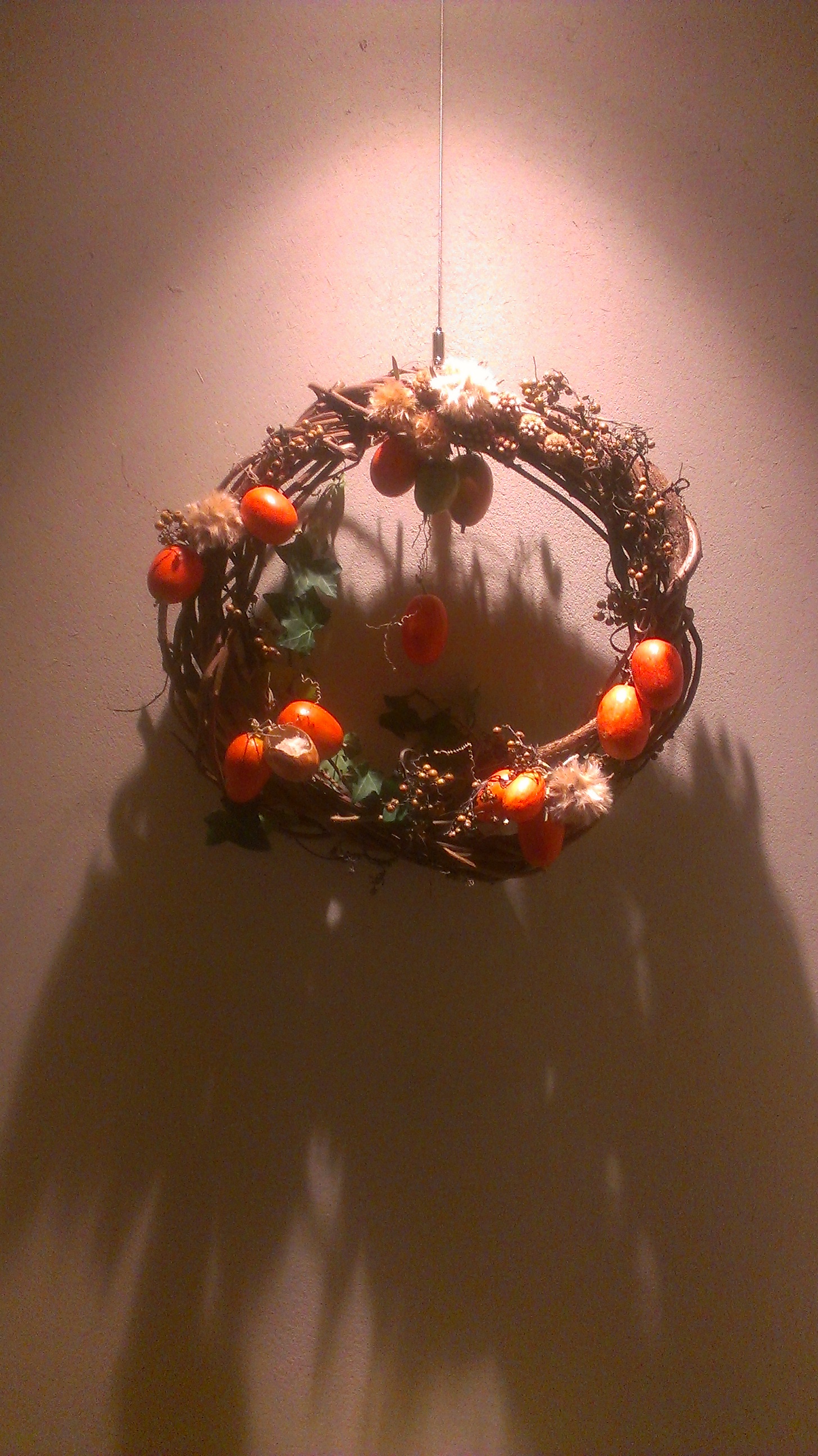 そして先日の記事で紹介しましたジャンジャンお手製「山女のリース」は、こんな感じに仕上がりましたよ。
