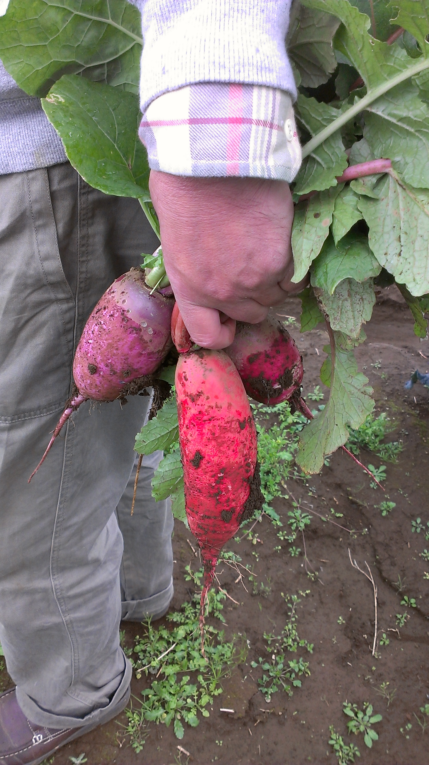 マサキさんの畑では今、トレビスプレコーチェやフェンネル・朱大根・赤くるり・赤かぶ・赤丸大根などなど、まだまだ沢山の種類の野菜が元気に育っておりました。