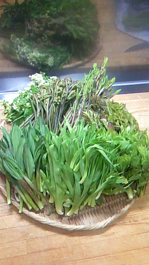 しおで・カタクリの花・タラの芽・こし油・ウルイ・赤アシショウマ・甘草・蕗の薹・あいこ・月山筍などなど。