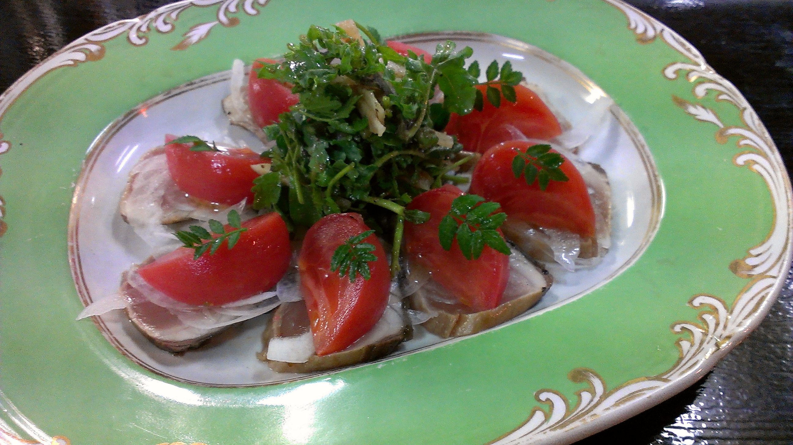 「宮崎・新門トマトと活〆鰆の叩き 藁の香」