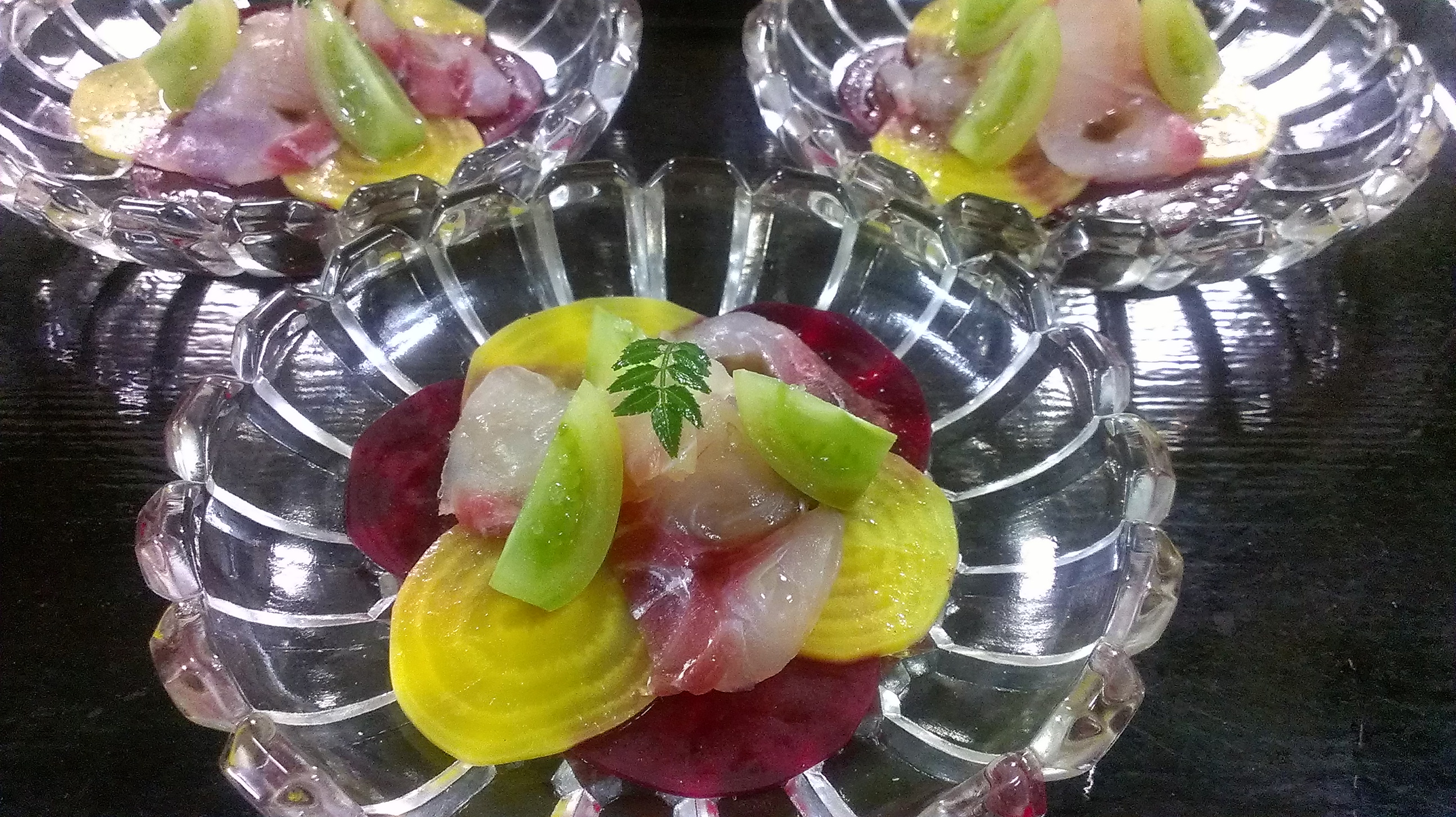 春の花をイメージした「2色のビーツと天然真鯛 オレンジの香」